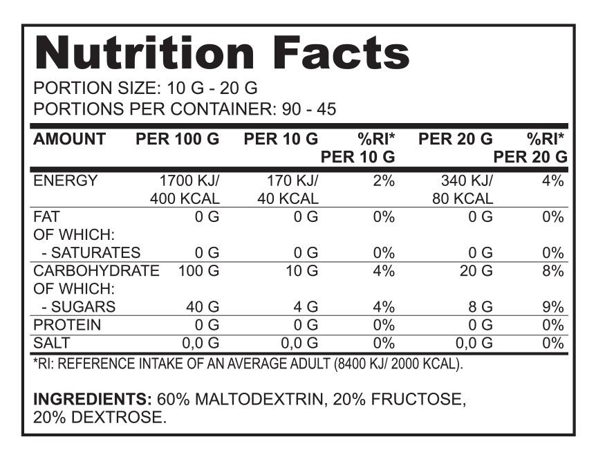 Egyszerű és összetett szénhidrátok kombinációja. Részben lassú, részben pedig gyors felszívódásának köszönhetően, szervezetünket azonnal és folyamatosan ellátja energiával. Fehérjével és rostokkal kombinálva alkalmas akár étkezések kiváltására is fogyókúrás célokkal. Valamint nélkülözhetetlen alapanyaga az extra tömegnövelő shake-nek.
