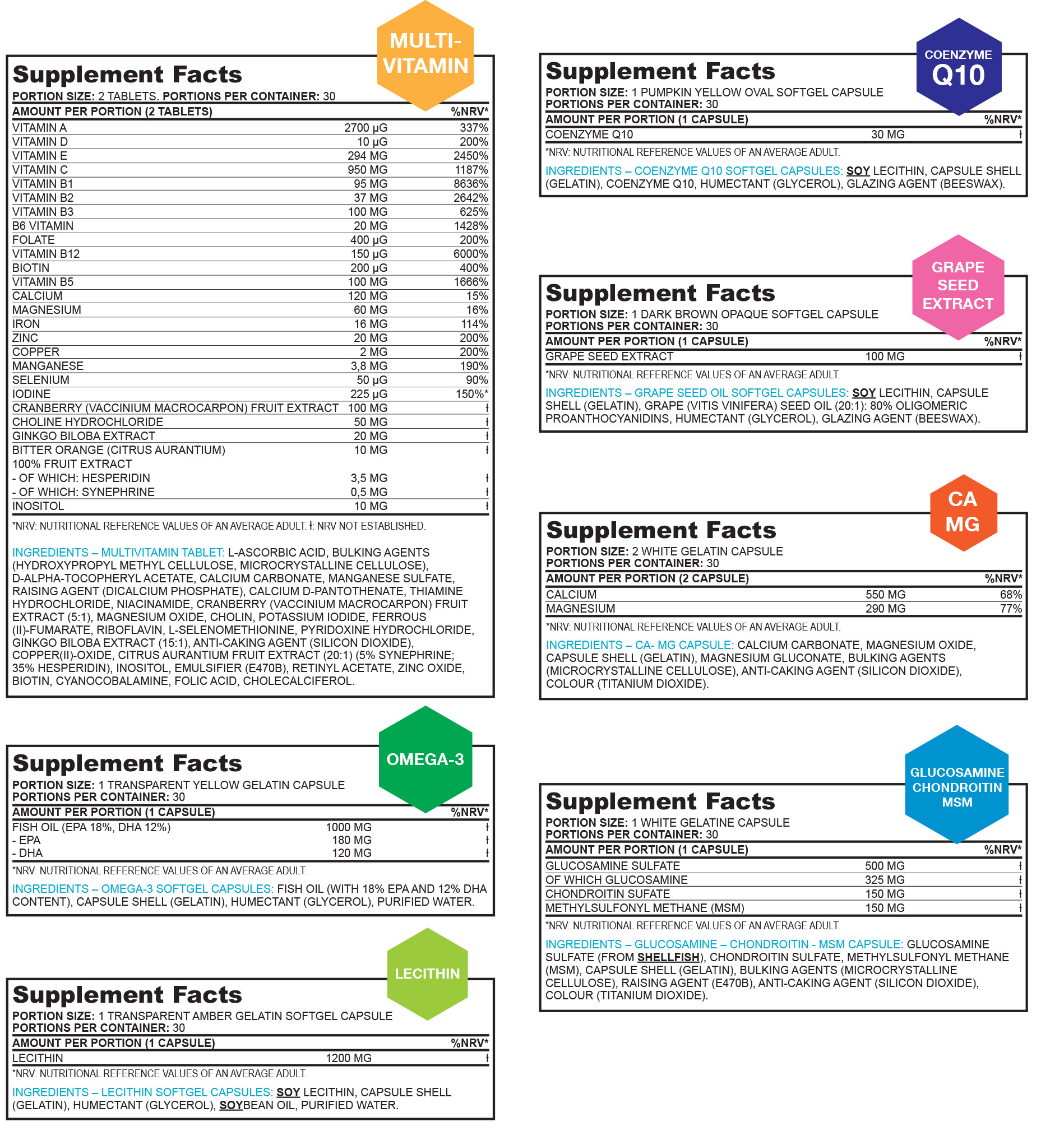 Hatóanyag tartalmát szakemberek úgy állapították meg, hogy az fedezze a napi optimális mennyiséget. A növényi kivonatok mellett antioxidáns, omega3 zsírsav és Q10 koenzim is megtalálható benne.