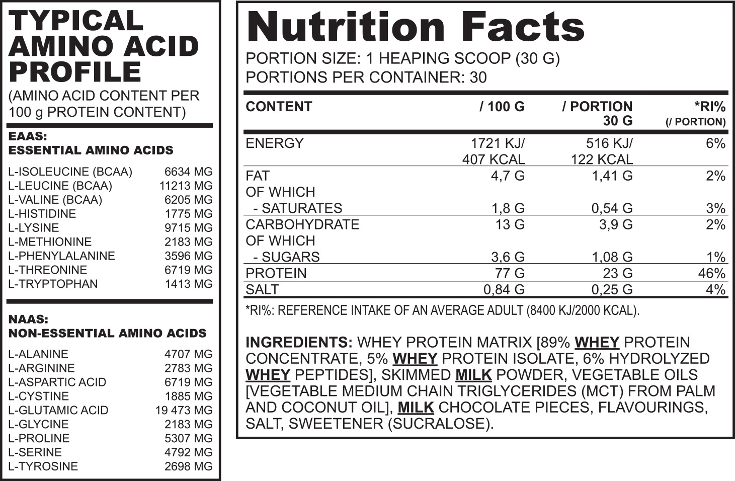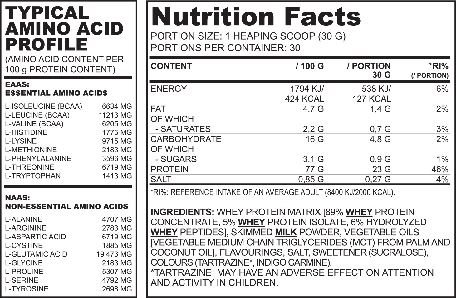 A DIY Whey Protein adagonként 23,4 g minőségi fehérjét biztosít a szervezeted számára. A fehérje hozzájárul az izomtömeg növekedéséhez és fenntartásához, valamint a normál csontozat fenntartásához*